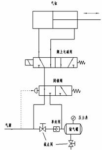 本方案主要由控制閥、氣控換向閥、定位器、自鎖閥、單向閥、減壓閥、儲氣罐等組成。其工作原理如下: